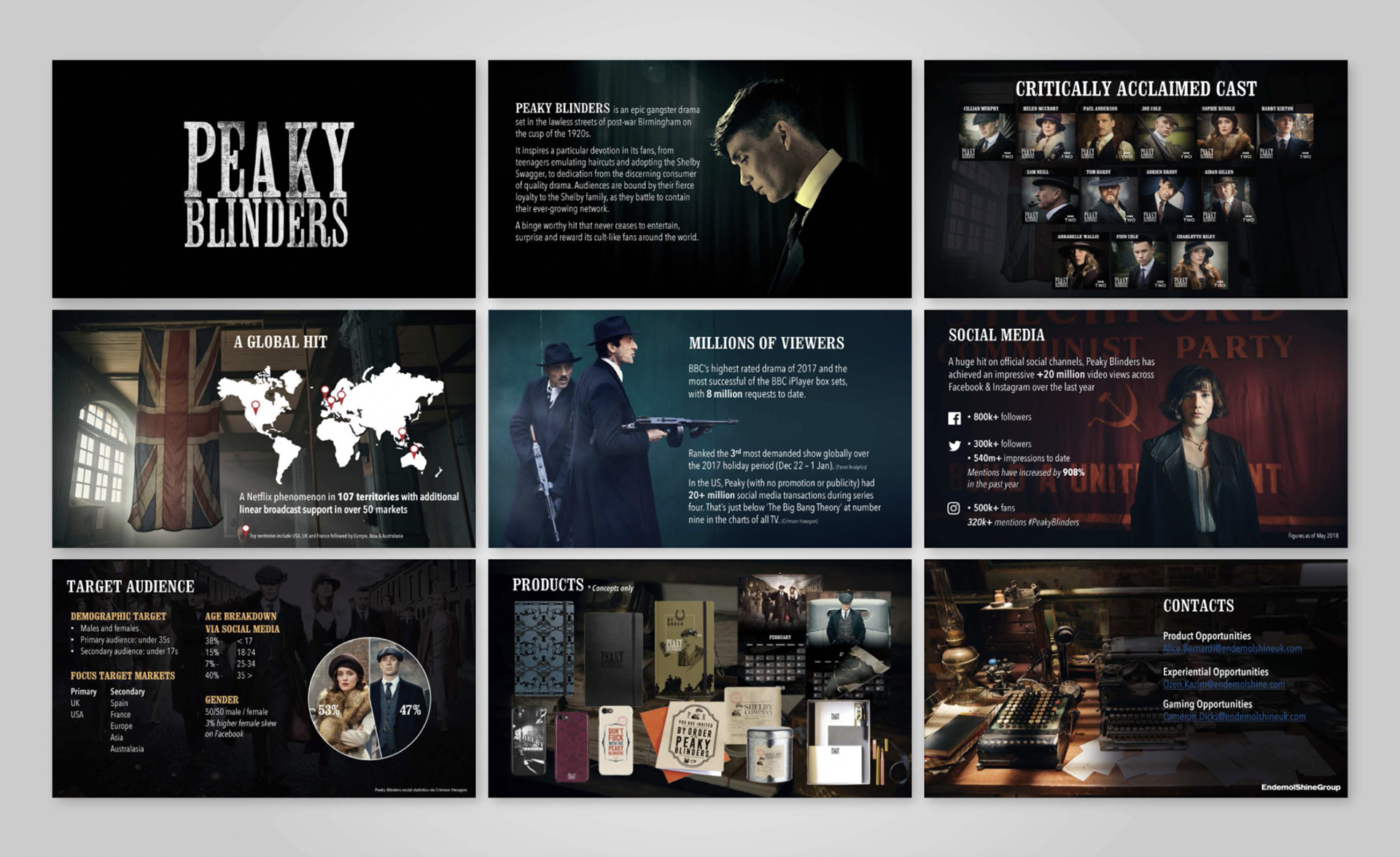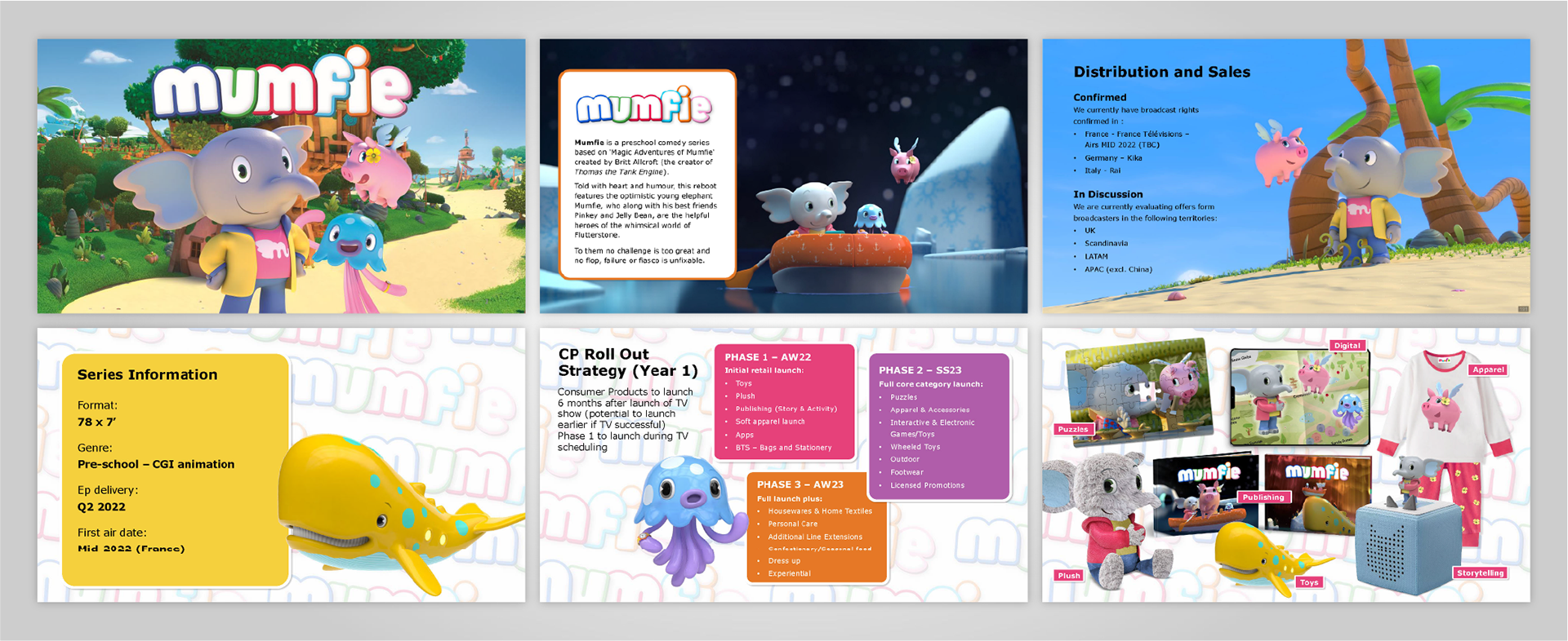 Just a snap shot of some of the sales decks I designed whilst working for licensing team at Banijay. These were an essential tool for the sales team and involved gathering data and presenting it in a clear and sympathetic way for each brand. Product concepts and mockups were a large part of the design process too.